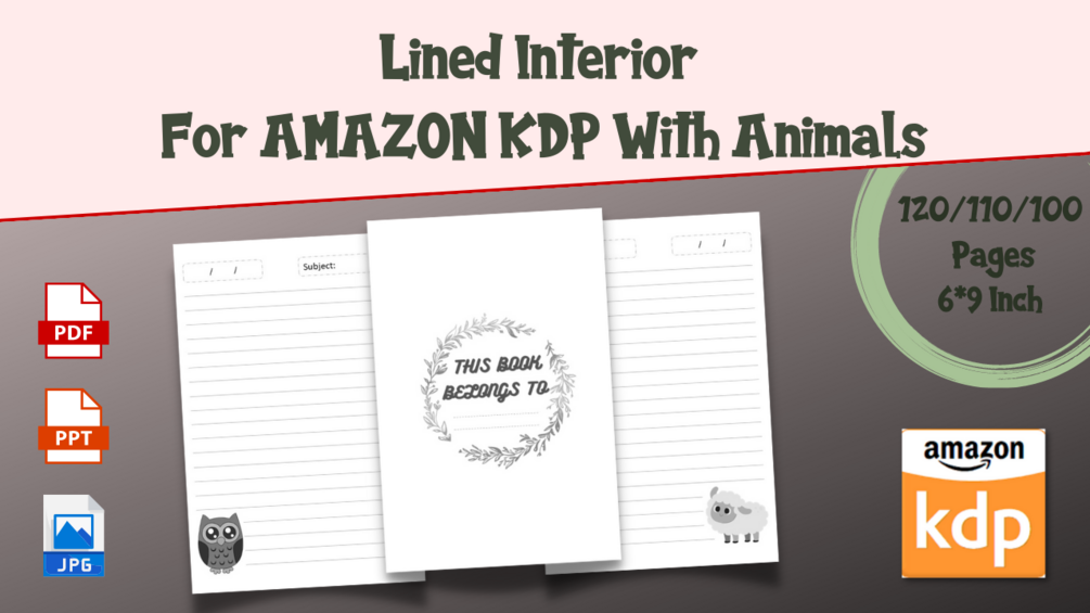 Lined Interior Template For AMAZON KDP 100/110/120 Pages 6*9 Inch With Animals